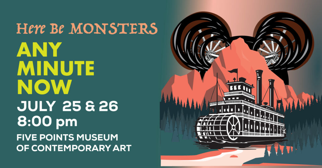 HERE BE MONSTERS theatre presents ANY MINUTE NOW, an evening of new short plays, July 25 & 26 at 8:00 PM at Five Points Museum of Contemporary Art in Victoria. ANY MINUTE NOW is a series of original plays written and directed by Nina Di Leo, Sam Hankins, Amanda Heinold, and Joey Ochoa.